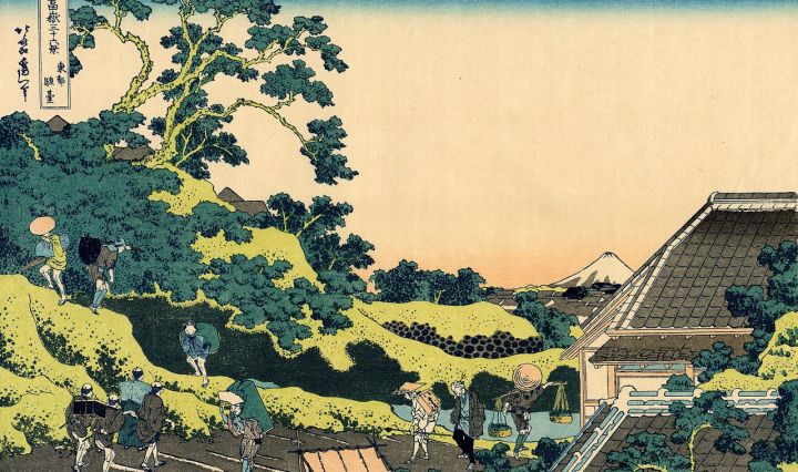 « Surugadai à Edo », cinquième estampe des « Trente-six vues du Mont Fuji ».